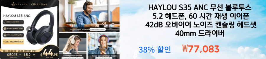 HAYLOU S35 ANC 무선 블루투스 5.2 헤드폰 ₩77,083 38% 할인