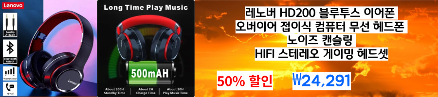 레노버 HD200 블루투스 이어폰 ₩24,291 50% 할인 8% 추가 할인